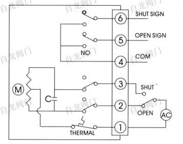 上海自龍閥門(mén)制造有限公司 精小型電動(dòng)執(zhí)行器接線 一、什么是精小型電動(dòng)執(zhí)行器 精小型電動(dòng)頭是上世紀(jì)九十年代末發(fā)明的新型電動(dòng)執(zhí)行器,較比老型的電 動(dòng)執(zhí)行器精小型電動(dòng)頭采用上裝式結(jié)構(gòu),在高壓、大口徑條件下減少了閥體自 身的連接螺栓,增強(qiáng)了閥門(mén)的可靠性且能克服系統(tǒng)自重對(duì)閥門(mén)正常工作的影 響。使得電動(dòng)閥門(mén)自身重量減輕,克服了安裝管道承重過(guò)大,維修、更換過(guò)于 笨重的問(wèn)題。  上海自龍閥門(mén)制造有限公司生產(chǎn)的精小電動(dòng)執(zhí)行器分為開(kāi)關(guān)型電動(dòng)執(zhí)行器, 無(wú)源型電動(dòng)執(zhí)行器,調(diào)節(jié)型電動(dòng)執(zhí)行器,智能型電動(dòng)執(zhí)行器,型號(hào)分別為ZL- 05,ZL-10,ZL-20,ZL-40W,ZL-60,ZL-100,ZL-200,ZL-05A,ZL-10A, ZL-20A,ZL-40A,ZL-60A,ZL-100A,ZL-200A系列電動(dòng)執(zhí)行機(jī)構(gòu)適用于部分 回轉(zhuǎn)類閥門(mén)(如蝶閥、球閥和風(fēng)門(mén)擋板等),采用優(yōu)質(zhì)鋁合金壓鑄件外殼,精 細(xì)流暢,體積小重量輕、免維護(hù)、耐腐蝕性強(qiáng)等優(yōu)良性能,可在狹窄地方使 用。精小型開(kāi)關(guān)型、無(wú)源觸點(diǎn)型電動(dòng)頭,ZL-40W精小型電動(dòng)執(zhí)行器廣泛應(yīng)用于 樓宇自動(dòng)化、水利、造紙、電力、化工等自動(dòng)化控制系統(tǒng)。  1、功能強(qiáng)勁:智能型、比例式、開(kāi)關(guān)式、各類信號(hào)輸出型應(yīng)有盡有 2、體積小巧:體積僅相當(dāng)于同類產(chǎn)品的35%左右 3、輕便宜人:重量?jī)H相當(dāng)于同類產(chǎn)品的30%左右 4、性能可靠:軸承牙口電氣元件等關(guān)鍵零部件采用進(jìn)口名牌產(chǎn)品 5、美觀大方:鋁合金壓鑄外殼、精細(xì)流暢、且可減少電磁干擾 6、精密耐磨:蝸輪輸出軸一體化特殊錒合金鍛造、強(qiáng)度高、耐磨性好 7、回差極?。何佪嗇敵鲚S一體化、避免了鍵聯(lián)結(jié)的間隙、傳動(dòng)精度高 8、安全保證:小型電動(dòng)執(zhí)行器通過(guò)1500V耐壓檢測(cè),F(xiàn)級(jí)絕緣電機(jī),安全有保障 9、配套簡(jiǎn)單:小型電動(dòng)執(zhí)行器采用單相電源、外接線路特別簡(jiǎn)單,也可做380V、直流電源 10、使用方便:免加油、免點(diǎn)檢、防水防銹、任意角度安裝 11、保護(hù)裝置:雙重限位、過(guò)熱保護(hù)、過(guò)載保護(hù)(選裝) 12、多種速度:小型電動(dòng)執(zhí)行器全行程時(shí)間5秒、10秒、15秒、30秒、60秒、100秒等 13、防腐防銹:支架、聯(lián)軸器、螺釘均采用不銹鋼 14、智能數(shù)控:小型電動(dòng)執(zhí)行器數(shù)字設(shè)定、數(shù)字整定、高度精確、自診斷、一機(jī)多能 15、集成一體:小型電動(dòng)執(zhí)行器智能控制模塊高度集成于電動(dòng)裝置本體中,無(wú)須外接定位器等 二、精小型電動(dòng)執(zhí)行器接線方法 下面是精小型電動(dòng)頭中最常見(jiàn)的一種執(zhí)行器,采用的是無(wú)源觸電接線  圖中1號(hào)是零線,2號(hào)、3號(hào)是火線,執(zhí)行器采用的是齒輪順時(shí)針轉(zhuǎn)動(dòng)與逆時(shí) 針轉(zhuǎn)動(dòng)原理,1與2相連是閥門(mén)開(kāi)啟,1與3相連是閥門(mén)關(guān)閉,作為無(wú)源觸點(diǎn)電動(dòng) 執(zhí)行器,執(zhí)行器本身還有信號(hào)反饋的功能,如圖,4、5、6,對(duì)應(yīng)的是1、2、 3。如有需要安裝反饋信號(hào)指示燈,請(qǐng)按照1、2、3的接線進(jìn)行對(duì)應(yīng)接線。 精小型電動(dòng)頭作為簡(jiǎn)單便捷的電動(dòng)執(zhí)行器,其應(yīng)用范圍很廣泛,廣泛應(yīng)用于 樓宇自動(dòng)化、水利、造紙、電力、化工等自動(dòng)化控制系統(tǒng)。我公司專業(yè)生產(chǎn)與 設(shè)計(jì)各類執(zhí)行器,歡迎來(lái)電詢問(wèn):021-5160 1991 m.ikff.cn