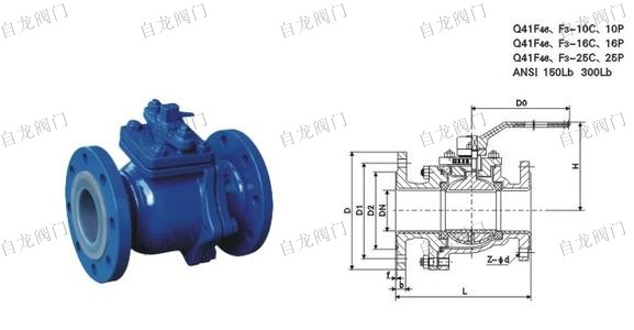 全襯四氟球閥Q41F46與不銹鋼那個好用 上海自龍閥門專業(yè)生產(chǎn)全襯四氟球閥Q41F46 一、全襯四氟球閥結(jié)構(gòu) 上海自龍閥門生產(chǎn)的全襯四氟球閥Q41F46是一款內(nèi)壁和閥芯球體都是四氟的球閥,采用優(yōu)質(zhì)的46氟為質(zhì)做材料,在耐酸堿和耐磨程度上都優(yōu)于一般閥門,襯四氟球閥可分為對分二片式和三片式兩種結(jié)構(gòu)型式,除具有的流體阻力小,啟閉速度快,結(jié)構(gòu)簡單外,采用FEP襯里層的球閥,具有極高的化學穩(wěn)定性,可以適用除“熔融堿金屬和元素氟”,以外其它任何強腐蝕性質(zhì)。采用全通徑、浮動球結(jié)構(gòu),閥門可在整個壓力范圍內(nèi)進行無泄漏關(guān)閉,更便于管路系統(tǒng)的通球掃線和管路維護。啟閉件球件與閥桿鑄(鍛)為一體,杜絕了由于壓力變化引起閥桿沖出承壓件內(nèi)的可能性,從根本上保證了工程中的使用安全性。結(jié)構(gòu)緊湊合理,閥體內(nèi)腔空間最小,減小了介質(zhì)滯留,另外,特殊的模壓工藝,使密封面致密度良好,加之人字環(huán)形PTFE填料組合,使閥門達到零泄漏。  二、襯氟球閥耐腐蝕程度優(yōu)于不銹鋼球閥 襯氟球閥由于內(nèi)部全部是由46氟組成,在防腐程度上優(yōu)于不銹鋼球閥,不銹鋼球閥在強酸強堿的使用中,經(jīng)常出現(xiàn)由于介質(zhì)腐蝕程度過強造成不銹鋼球芯腐蝕破損,造成密封不嚴,而襯氟球閥不管是在密封還是耐磨程度上都優(yōu)于不銹鋼,襯氟球閥為控制各種強腐蝕性介質(zhì)的啟閉而進行的專業(yè)設計,廣泛使用于石油,化工,染化,農(nóng)藥,制酸制堿等行業(yè),是目前防腐閥門最理想的選擇. | 型號 | Q41F46-10 | Q41F46-16 | Q41F46-10C | Q41F46-16C | | 工作壓力(MPa) | 1.0 | 1.6 | 1.0 | 1.6 | | 適用溫度(℃) | -10~150 | -20~150 | | 適用介質(zhì) | 腐蝕性介質(zhì) | | 材料 | 閥體 | 鑄鐵內(nèi)襯聚四氟乙烯 | 鑄鋼內(nèi)襯聚四氟乙烯 | | 球體 | 鑄鋼外包聚四氟乙烯 | | 密封圈 | 增強聚四氟乙烯 | 聚四氟乙烯 | | 填料 | 聚四氟乙烯 | 主要外形和連接尺寸 | 公稱通徑 | PN1.6(MPa)主要外形尺寸和連接尺寸(mm) | 參考值 | 重量 | | DN | L | D | D1 | D2 | f | b | Z-Φd | H1 | Do | ㎏ | | 15 | 130 | 95 | 65 | 45 | 3 | 14 | 4-Φ14 | 95 | 140 | 4 | | 20 | 140 | 105 | 75 | 55 | 3 | 14 | 4-Φ14 | 98 | 150 | 4.5 | | 25 | 150 | 115 | 85 | 65 | 3 | 16 | 4-Φ14 | 113 | 150 | 5.5 | | 32 | 165 | 135 | 100 | 78 | 3 | 18 | 4-Φ18 | 130 | 180 | 7 | | 40 | 180 | 145 | 110 | 85 | 3 | 18 | 4-Φ18 | 135 | 200 | 9 | | 50 | 200 | 160 | 125 | 100 | 3.5 | 20 | 4-Φ18 | 140 | 220 | 15 | | 65 | 220 | 180 | 145 | 120 | 3.5 | 20 | 4-Φ18 | 145 | 280 | 17 | | 80 | 250 | 195 | 160 | 135 | 4 | 22 | 8-Φ18 | 205 | 320 | 30 | | 100 | 280 | 215 | 180 | 155 | 4 | 24 | 8-Φ18 | 230 | 380 | 40 | | 125 | 320 | 245 | 210 | 185 | 4 | 26 | 8-Φ18 | 252 | 500 | 60 | | 150 | 360 | 280 | 240 | 210 | 4 | 28 | 8-Φ23 | 283 | 600 | 75 | | 200 | 400 | 335 | 295 | 265 | 5 | 30 | 8-Φ23 | 325 | 750 | 130 | | 250 | 450 | 405 | 355 | 320 | 5 | 34 | 12-Φ26 | 370 | 900 | 210 | 我公司專業(yè)生產(chǎn)與設計各類襯氟閥門執(zhí)歡迎來電詢問:021-5160 1991 m.ikff.cn