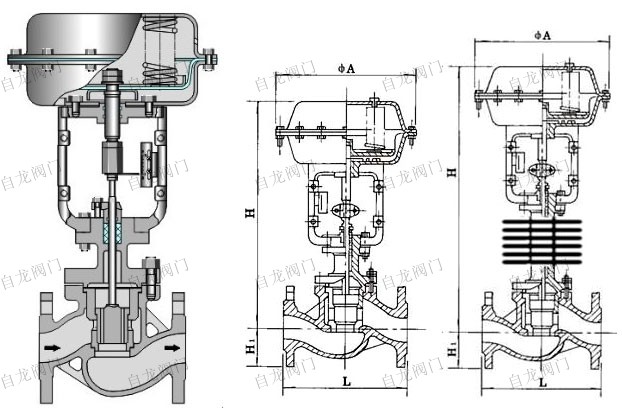 上海自龍閥門制造有限公司生產(chǎn)的ZMA(B)M型氣動薄膜套筒調節(jié)閥普遍使用的一種氣動執(zhí)行器,它采用平衡式閥芯結構,軸向不平衡力小,穩(wěn)定性好,閥桿不易產(chǎn)生振動,允許壓差大、噪聲低、流通能力較大、適應性強而使于流量大、壓差大、泄漏量要求不高的場合(在大部分應用場合可代替單、雙座調節(jié)閥)。當采用軟密封或硬密封結構時,特別適用于即要求調節(jié)又要求切斷的多用途場合。