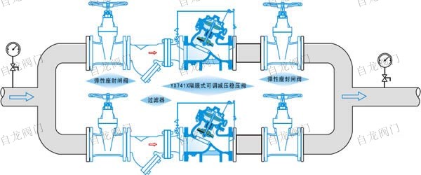 上海自龍閥門(mén)制造有限公司生產(chǎn)的YX741X可調(diào)式減壓穩(wěn)壓閥一般安裝在供水管網(wǎng)系統(tǒng)的上游,實(shí)現(xiàn)對(duì)其下游管網(wǎng)或裝置的減壓穩(wěn)壓功能。YX741X可調(diào)式減壓穩(wěn)壓閥產(chǎn)品廣泛用于高層建筑、生活區(qū)域或其它供水管網(wǎng)系統(tǒng)的水壓控制。有隔膜式與活塞式可選。