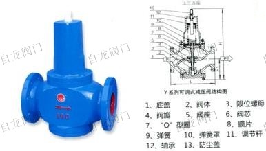 上海自龍閥門制造有限公司生產(chǎn)的 Y416X(Y410X)型彈簧薄膜式減壓閥屬于直接作用式薄膜彈簧減壓閥。主要由調(diào)節(jié)彈簧、膜片、活塞、閥座、閥瓣等零件組成。利用膜片直接傳感下游壓力驅(qū)動閥瓣,控制閥瓣開度完成減壓穩(wěn)壓功能。本產(chǎn)品在城市建筑、高層建筑的冷熱供水系統(tǒng)中,可取代常規(guī)分區(qū)水管,節(jié)省設(shè)備。也可在通常的冷熱水管網(wǎng)中,起減壓穩(wěn)壓作用。本產(chǎn)品調(diào)壓、穩(wěn)壓動作平穩(wěn),適用于水和非腐蝕性液體介質(zhì)的管路。
