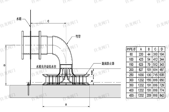 2.有效消除抽吸水過程中水箱(池)產(chǎn)生的旋流。