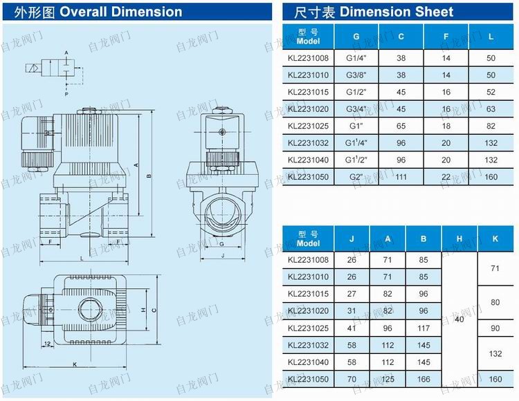 上海自龍閥門制造有限公司生產(chǎn)的膜片式電磁閥KL采用膜片式結(jié)構(gòu)、對介質(zhì)潔凈度要求較低,閥門流量系數(shù)比普通閥提高10%,采用特殊密封結(jié)構(gòu)和進(jìn)口合成橡膠密封無泄漏,工作平穩(wěn)噪音低、無水錘沖擊、無顫抖聲,液體、氣體、可混合使用,更加提高電磁閥的使用范圍,采用進(jìn)口合成橡膠密封壽命長是同類產(chǎn)品的5倍以上、經(jīng)受二十年長期市場考驗(yàn)。