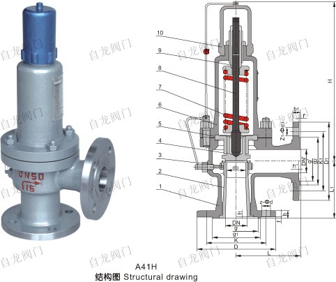上海自龍閥門制造有限公司生產(chǎn)的A41H型適用于工作溫度≤300℃的石油氣、空氣、水等介質(zhì)的設(shè)備或管路上。A41Y-P/R型適用于工作溫度≤200℃有腐蝕性介質(zhì)的設(shè)備或管路上,作為超壓保護(hù)裝置。連接法蘭標(biāo)準(zhǔn)按JB/T……94/系列1。A41彈簧微啟封閉式安全閥是一種用于無毒無害及非易燃易爆液體介質(zhì)的管道及容器等設(shè)備作為超壓保護(hù)的最終保護(hù)裝置,該類型安全閥采用彈簧直接載荷式,法蘭連接,整體封閉式結(jié)構(gòu)。