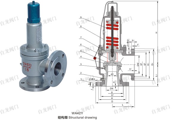 上海自龍閥門制造有限公司生產(chǎn)的A42H型適用于工作溫度≤300℃的石油氣、空氣、水等介質(zhì)的設(shè)備或管路上。A42Y-P/R型適用于工作溫度≤200℃有腐蝕性介質(zhì)的設(shè)備或管路上,作為超壓保護(hù)裝置。連接法蘭標(biāo)準(zhǔn)按JB/T……94/系列1。A42彈簧微啟封閉式安全閥是一種用于無毒無害及非易燃易爆液體介質(zhì)的管道及容器等設(shè)備作為超壓保護(hù)的最終保護(hù)裝置,該類型安全閥采用彈簧直接載荷式,法蘭連接,整體封閉式結(jié)構(gòu)。